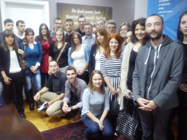 Students from various universities in Serbia and human rights organizations’ activists, who attend a seminar organized by OSCE in Serbia titled “Dealing with the Past and Judicial Institutions”, visited the Humanitarian Law Center (HLC) on Friday, October 25th, 2013.