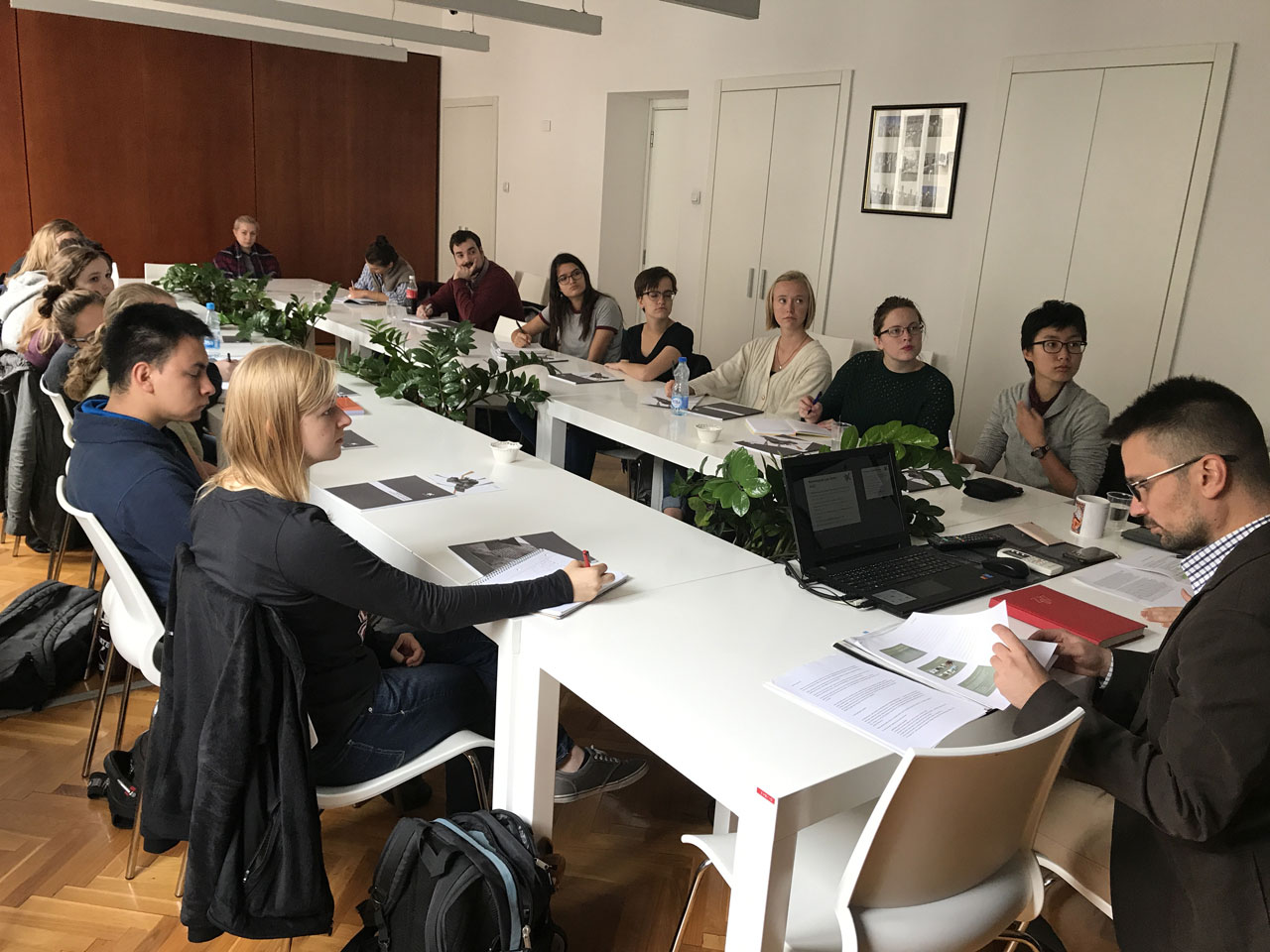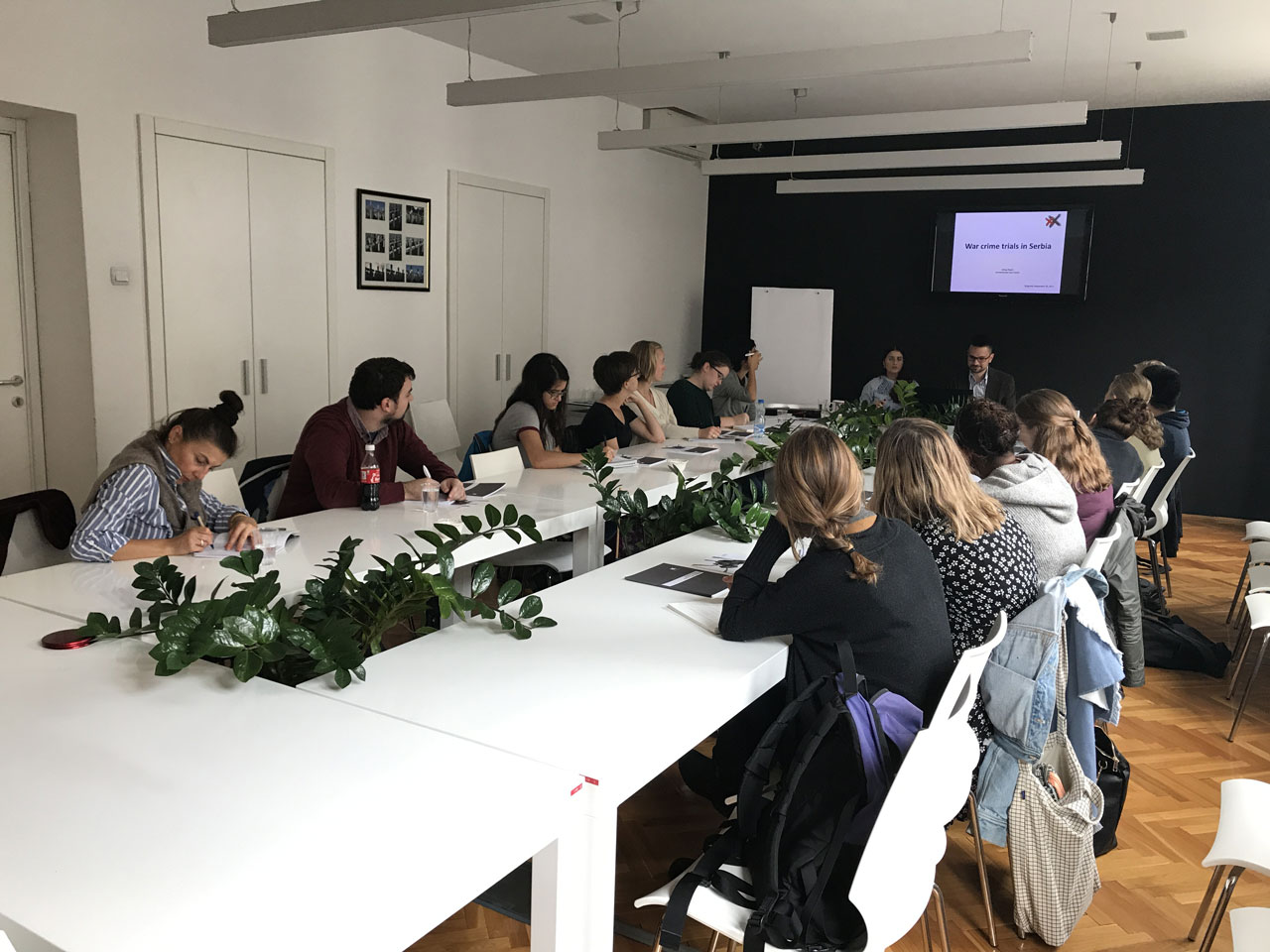 Relja Radosavljević, Legal Analyst at the HLC, presented the work of the organization, talking about its history, the realization of its project regarding the right to reparations in Serbia and the RECOM Process. Višnja Šijačić, another Legal Analyst at the HLC, also spoke with the students, and presented the achievements in the process of dealing with the past in Serbia, especially focusing on the legal framework and the work of the institutions responsible for the processing of war crimes in Serbia.