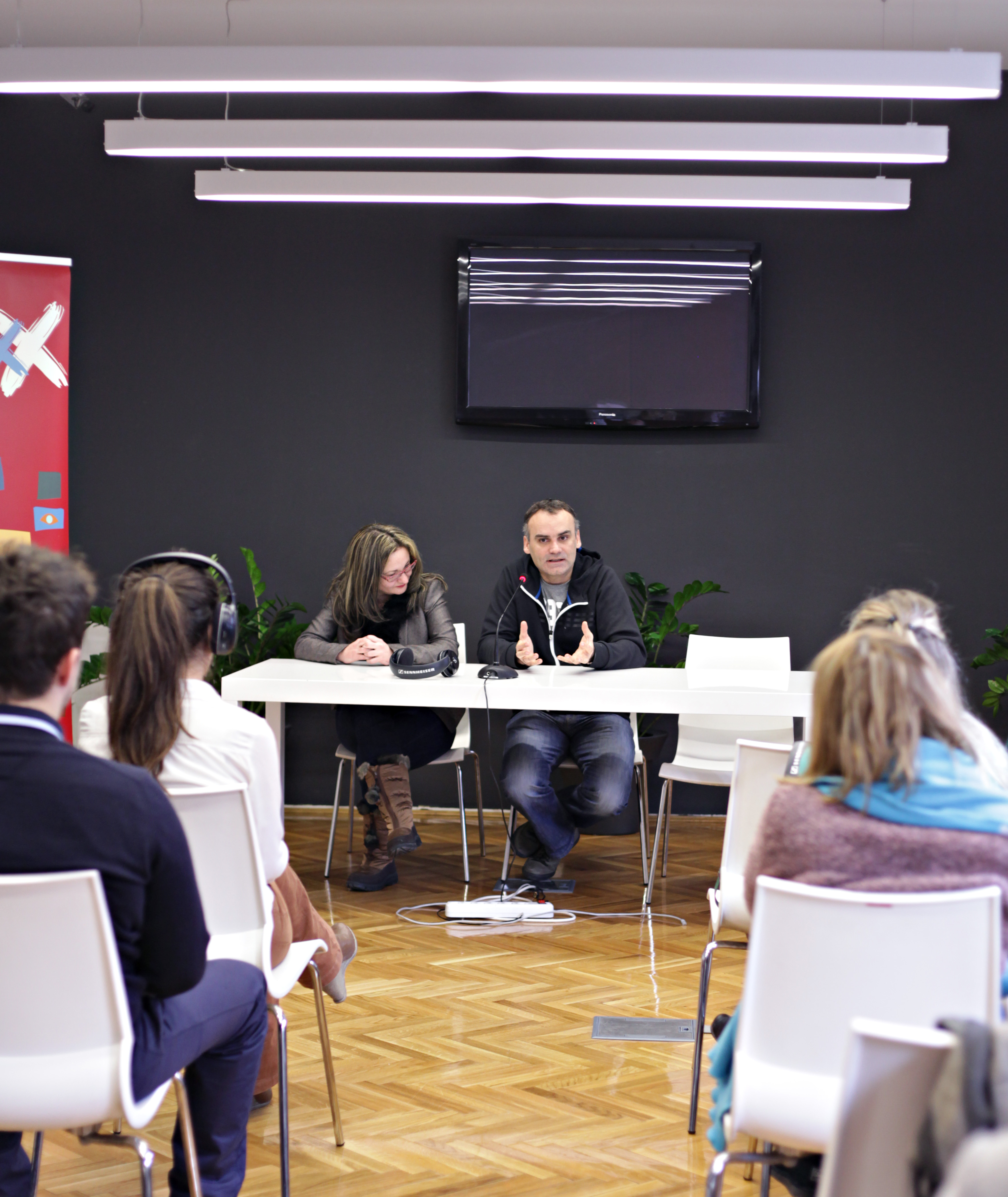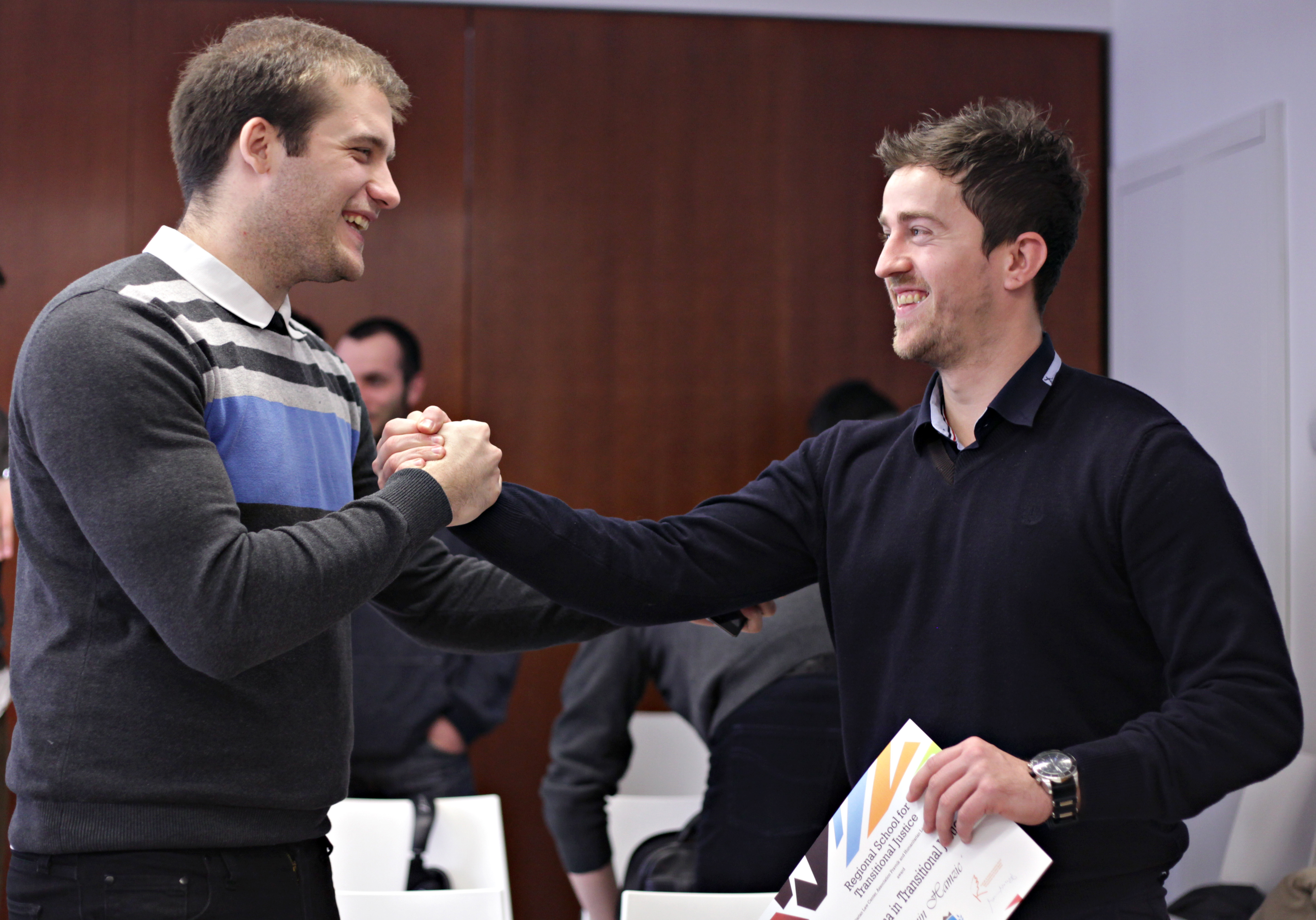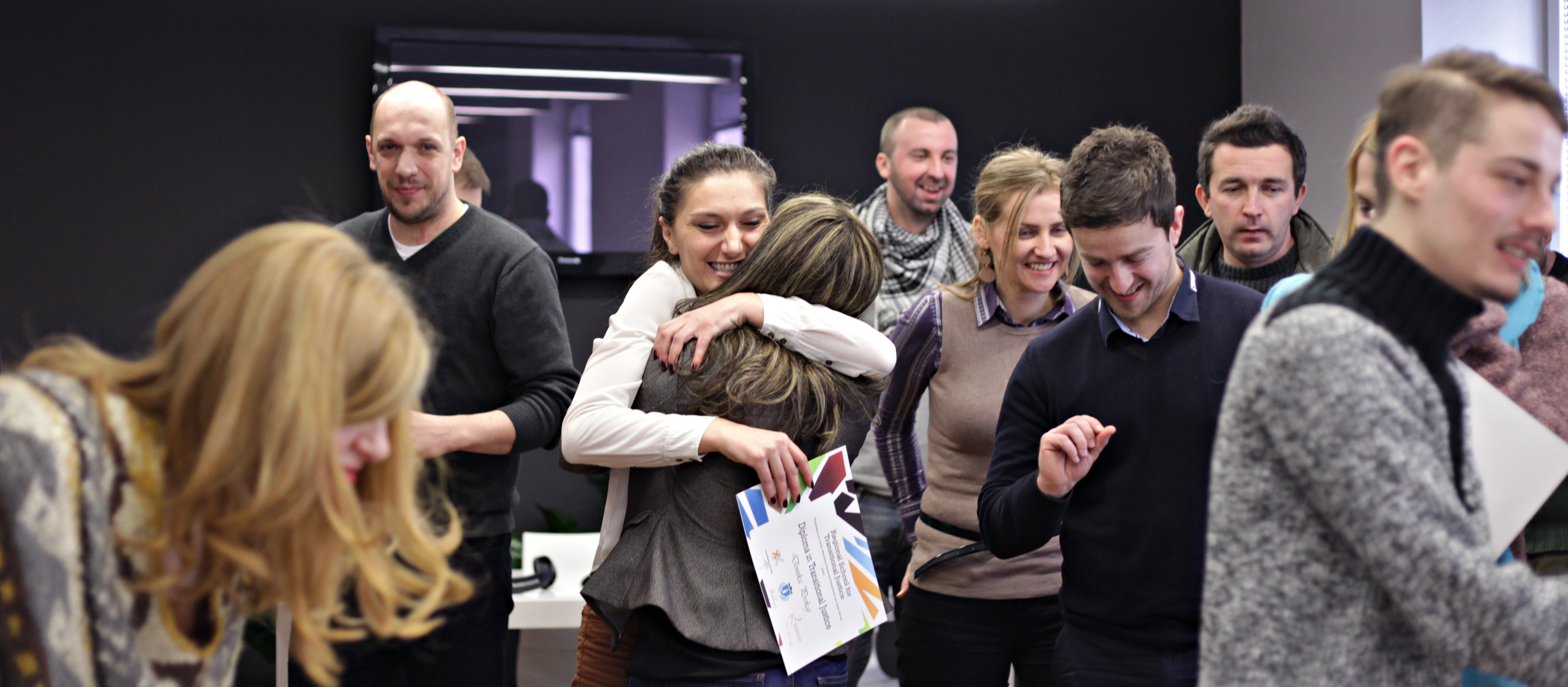 U nedelju, 2. februara 2014. godine, Dino Mustafić, pozorišni i filmski reditelj iz Sarajeva, uručio je diplome drugoj generaciji polaznika Regionalne škole tranzicione pravde. Tom prilikom, Dino Mustafić je sa studentima podelio svoja iskustva iz pozorišnog rada u opkoljenom i bombardovanom Sarajevu, a takođe i istakao važnost bavljenja suočavanjem sa prošlošću na profesionalan i objektivan način, kako kroz vansudske mehanizme i suđenja za počinjene zločine, tako i putem umetnosti.