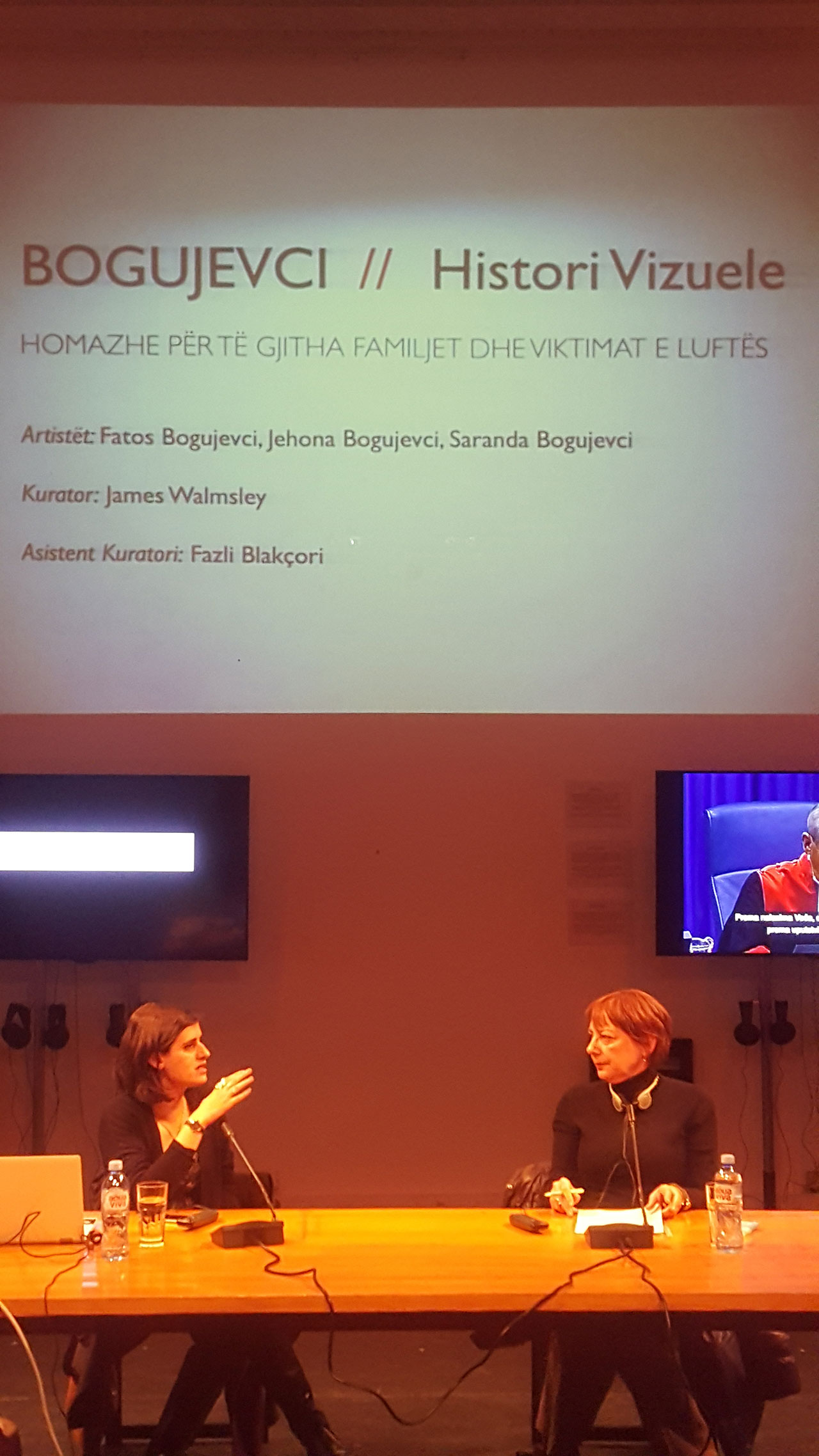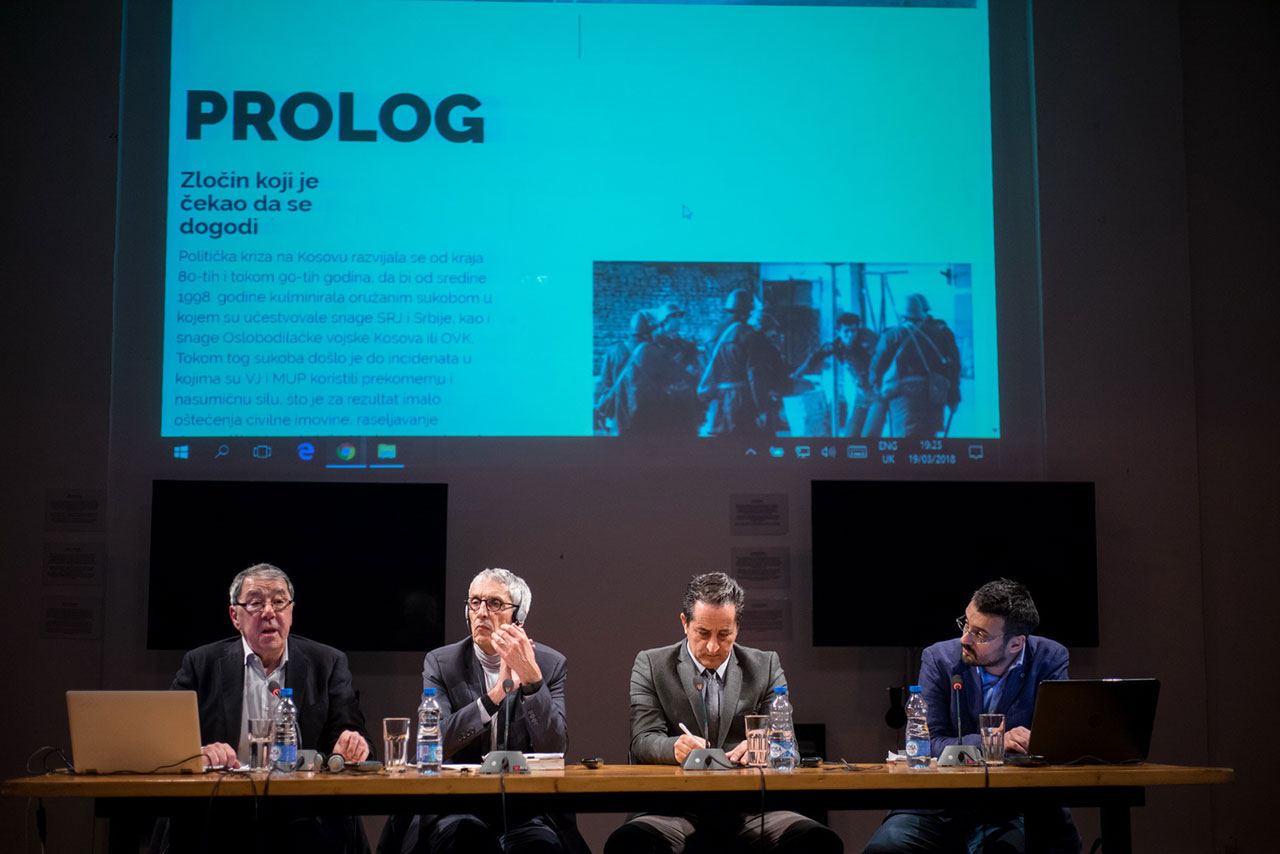 Izložba je otvorena debatom o javnom znanju sudski utvrđenih činjenica o zločinima koji su počinjeni tokom oružanog sukoba na Kosovu. Svoja viđenja tom prilikom su izneli novinar i direktor SENSE – Centra za tranzicijsku pravdu Mirko Klarin, tužilac u predmetu Šainović i dr. Tomas Henis, izvršni direktor FHP-a Kosovo Bekim Blakaj i Nemanja Stjepanović iz FHP-a.